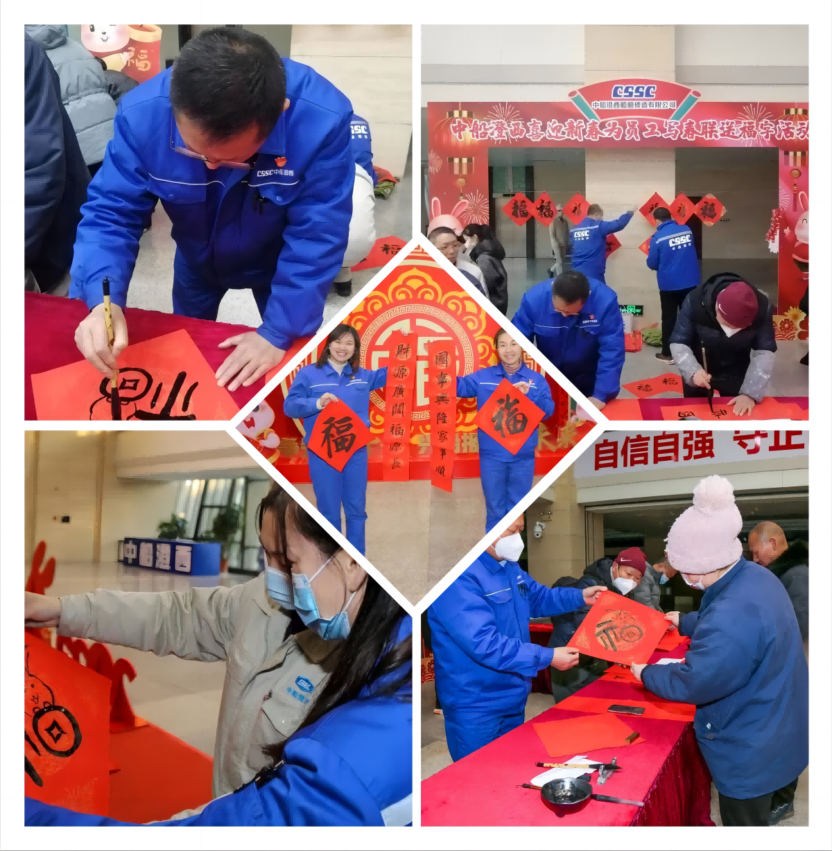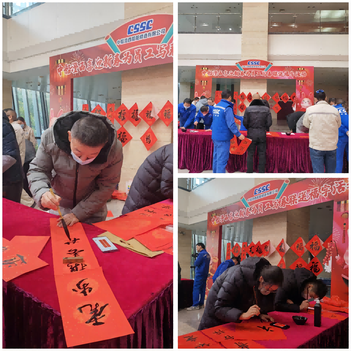 瑞虎辭舊歲,金兔迎新春!為弘揚(yáng)中華民族優(yōu)秀傳統(tǒng)文化、營造歡樂祥和的節(jié)日氛圍,1月17日下午,在農(nóng)歷新年來臨之際,中國船舶集團(tuán)旗下中船澄西船舶修造有限公司工會(huì)組織書畫俱樂部成員開展為職工寫春聯(lián)送福字活動(dòng)。