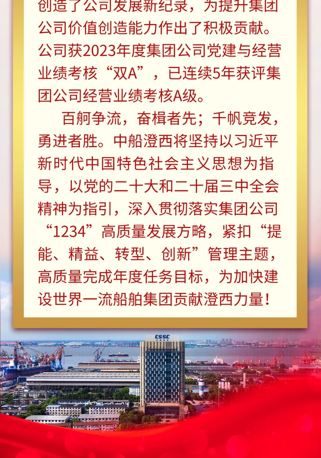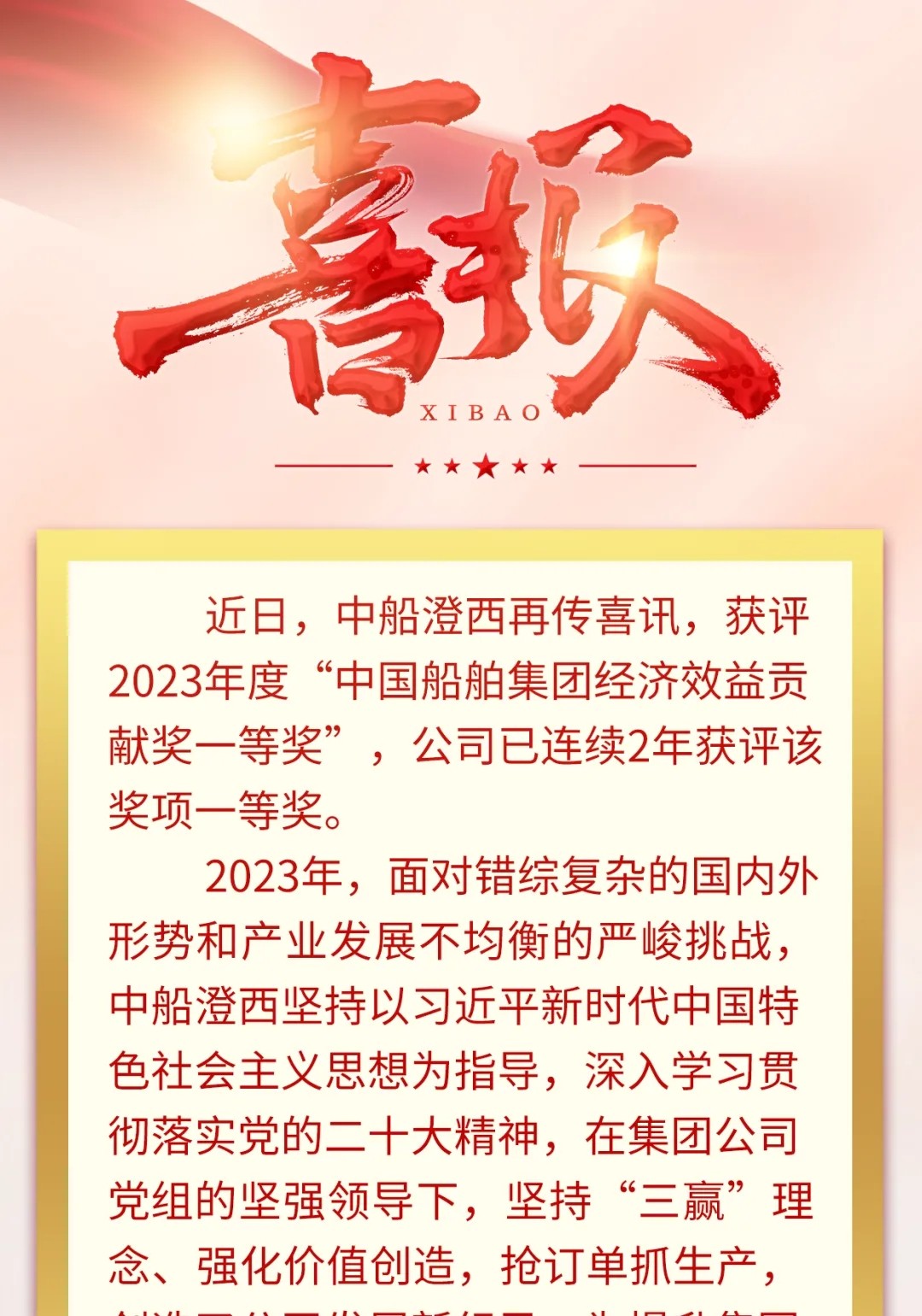 再傳喜訊!中船澄西再獲“中國船舶集團(tuán)經(jīng)濟(jì)效益貢獻(xiàn)獎一等獎”