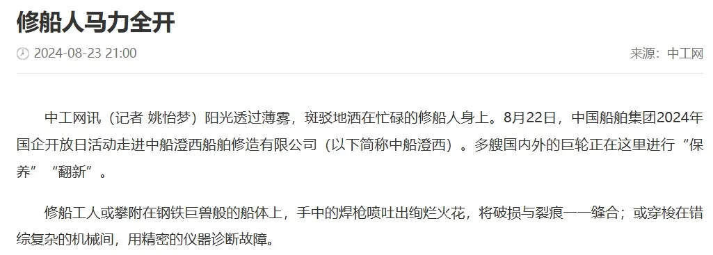 對中船澄西高質(zhì)量發(fā)展故事進(jìn)行了廣泛報道